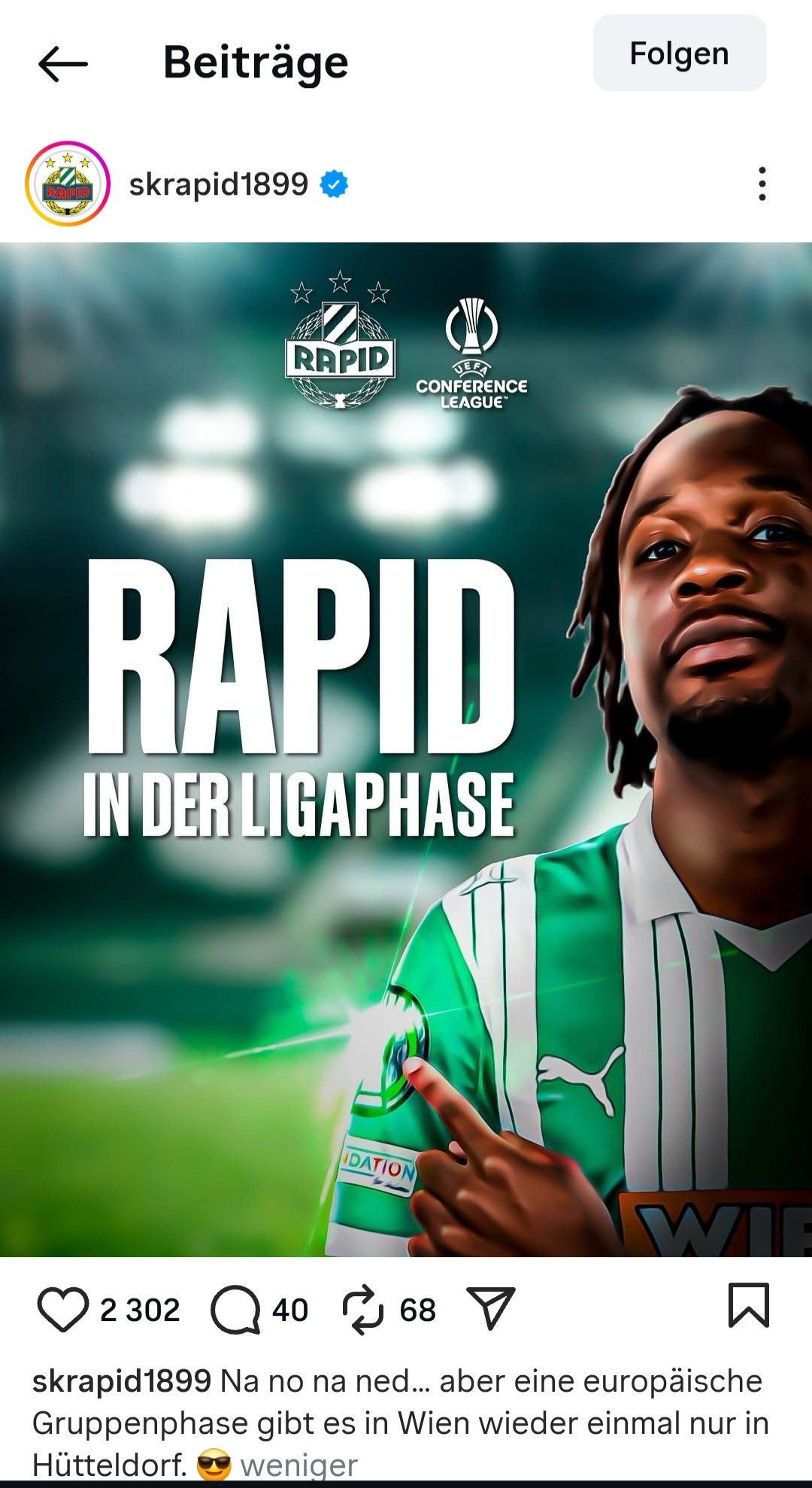 Na Gott sei Dank. Deus kann nun beruhigter sein, weil Rapid wegen der EC-Belastung nicht komplett enteilt und mit nur 7 Punkten Vorsprung Meister wird statt mit 20. Glück gehabt.