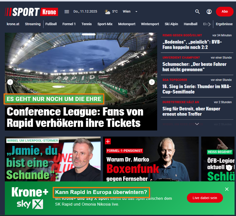 Pezi The Pezident of Bäristan Geschrieben vor 27 Minuten QPRangers schrieb vor 4 Minuten: Was soll man heute "hoffen" einen Sieg der Söldner, dass uns die Zyprioten nicht überholen ? Oder einen weiteren Tiefschlag für GrünWeiss ?Dass die einen neuen Trainer holen ist so oder so fix...schwierig. Einen Sieg wünsch ich denen eigentlich nie, andererseits sind sie eh draussen und für die UEFA Wertung...könnte ja dann sein ,dass genau WIR dann als 5. irgendwann mal durch die Finger schauen und uns nicht unsere obligate Internationale Juli/August Quali Watschen holen können ^^ Alter "verhökern" wo sind wir, was sind das für Trottljournalisten ?? Sind wir im Ruhrpott ey ? Oder in Wien ??? Niederlage natürlich. Den 5. Platz haben schon schön brav wir vergeigt mit unseren glorreichen Auftritten in letzter Zeit. Und wer will schon in einigen Jahren hören: "Ihr seid nur dabei, weil wir so heroisch in Europa für Österreichs Wertung gekämpft haben." Hurricane schrieb vor 8 Minuten: Also was jetzt? Auf Rapid gibt es immer lecker Stadionwurst. 1 Zitieren Diesen Beitrag teilen Link zum Beitrag Auf anderen Seiten teilen More sharing options...