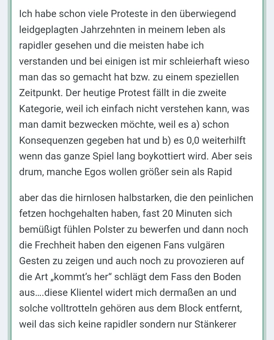 Decay26 Postinho Geschrieben vor 1 Stunde Altes Landgut schrieb vor 2 Stunden: Zum Glück hat Rapid nie versagt beim Ordnerdienst bei den unzähligen Platzstürmen, die es dort schon gab ... da lag es dann immer daran, dass wir provoziert haben. Was für ein ... Das lustigste daran ist ja, dass die die am Platzsturm beteiligt waren alle Akkredetierungen hatten. Deswegen durften sie rechtlich auf den Platz. Aber man kann diese Leute dann nicht ausforschen die mitten am Rasen stehen und andere Leute verprügeln? Welcome to Vorstadt Wien 1 Zitieren Diesen Beitrag teilen Link zum Beitrag Auf anderen Seiten teilen More sharing options...