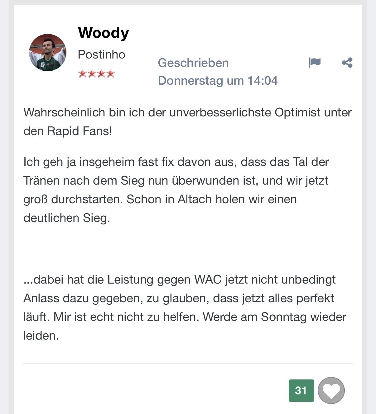 Blackcactus Postinho Geschrieben vor 37 Minuten Super. Rapid gehörig unter Druck gegen rbs. Wsg gegen gak, wenn die gewinnen, muss rapid zumindest ein x holen. 0 Zitieren Diesen Beitrag teilen Link zum Beitrag Auf anderen Seiten teilen More sharing options...