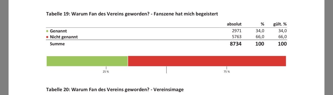 SCRBasti Stammspieler Geschrieben vor 1 Stunde (bearbeitet) a.l.e.x. schrieb vor einer Stunde: Auch wenn du es noch so oft wiederholst, es gibt keine Belege dafür, dass irgendwer wegen der szene ins stadion Seine eigene ungestützte Behauptung revidieren nachdem sie widerlegt wurde? Ne Die Quelle als unseriös attackieren damit man sich rausreden kann? Immer her damit. Also es ist schon hart lächerlich wie einfach es sich manche hier machen. Du wirfst mit komplett an den Haaren herbeigezogenen Zahlen um dich - 20% mehr Sponsoren, 20% mehr Zuschauer etc. die man so nie belegen kann. Wirfst mir aber vor ich hätte keine Belege. Ich liefere dir einen quantitativen Beleg einer Universität und du konterst mit ach ist doch bloß eine Onlineumfrage. Das diese Umfrage wohl der beste Weg ist um ein Ergebnis in dieser heiklen Frage zu bekommen checkst du nicht mal, Hauptsache den easy cop out wählen. Top gemacht. Ja lassen wir es, es bringt tatsächlich nichts wenn der eine sich die Mühe macht seine Aussagen tatsächlich mit Quellen zu stützten und der andere das nicht will/kann und dann beleidigt ist wenn sein 1 mal 1 Weltbild nicht standhält. edit: Interessanterweise ist der Anteil an Personen die aufgrund sportlicher Erfolge Fan eines Vereins geworden sind mit gerade mal 6.4% deutlich geringer als aufgrund der Szene. Das geht absolut konträr zu vielen Aussagen gegen meine Behauptungen und stützt sich mit vielen meiner Aussagen. Ich erwarte aber keine Einsicht von irgendjemandem hier. Es ist doch einfach der Stammtisch und da zählt nur die eigene Meinung, und die wird doch von so etwas lächerlichem wie Fakten nicht verändert. bearbeitet vor 42 Minuten von SCRBasti 0 Zitieren Diesen Beitrag teilen Link zum Beitrag Auf anderen Seiten teilen More sharing options...