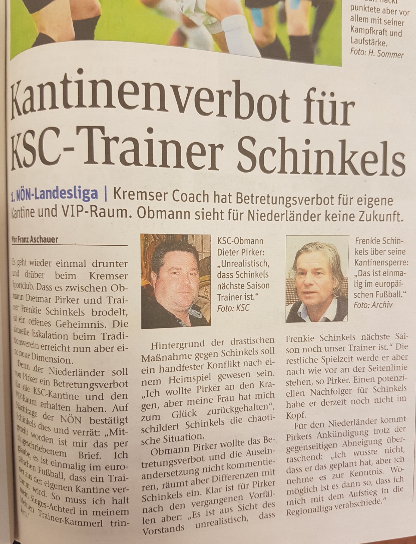 _UndertakeR_ Channel 9 - Mod Geschrieben 17. Mai 2018 Heute ein Bericht zum Thema Schinkels vs Ksc Präsident in der Krone. Eine Aussage von Schinkels untermauert die Gerüchte um die finanziellen Probleme in der Wachau, angesprochen auf sein Hausverbot meint er "Eigentlich ein Wahnsinn, dass die Herren seit über zwei Monaten keine Spielergagen mehr auszahlen und nun der Kantine einen ihrer drei Top Kunden wegnehmen." 2 Zitieren Diesen Beitrag teilen Link zum Beitrag Auf anderen Seiten teilen More sharing options...