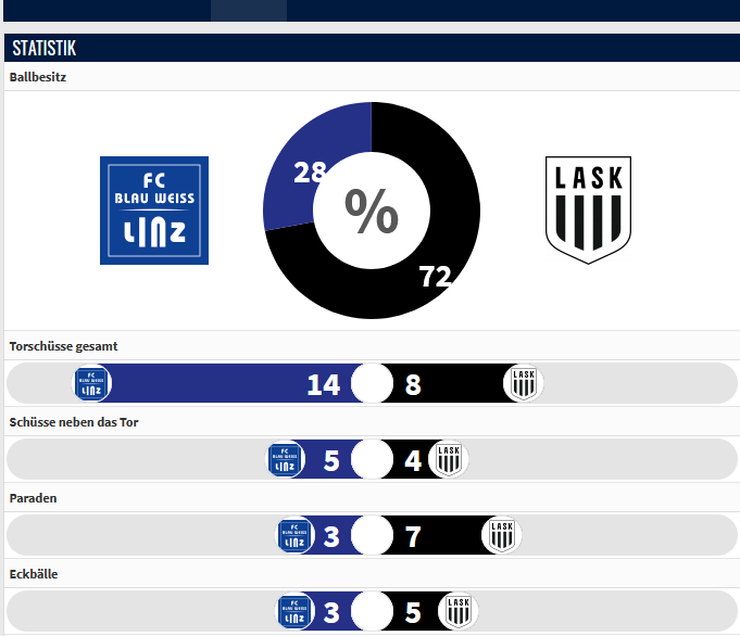 linzerSKV Fanatischer Poster Geschrieben vor 6 Stunden Muffi schrieb vor 18 Minuten: 1:0 Sieg unter Scheibi 0:1 unter Mörec: das die Spielanlage eine komplett andere war, sieht man doch alleine am Ballbesitz. Es gehört mehr betrachtet als nur Statistiken. Der lask hat am Wochenende komplett anders agiert als im Vorjahr unter Schopp. 0 Zitieren Diesen Beitrag teilen Link zum Beitrag Auf anderen Seiten teilen More sharing options...
