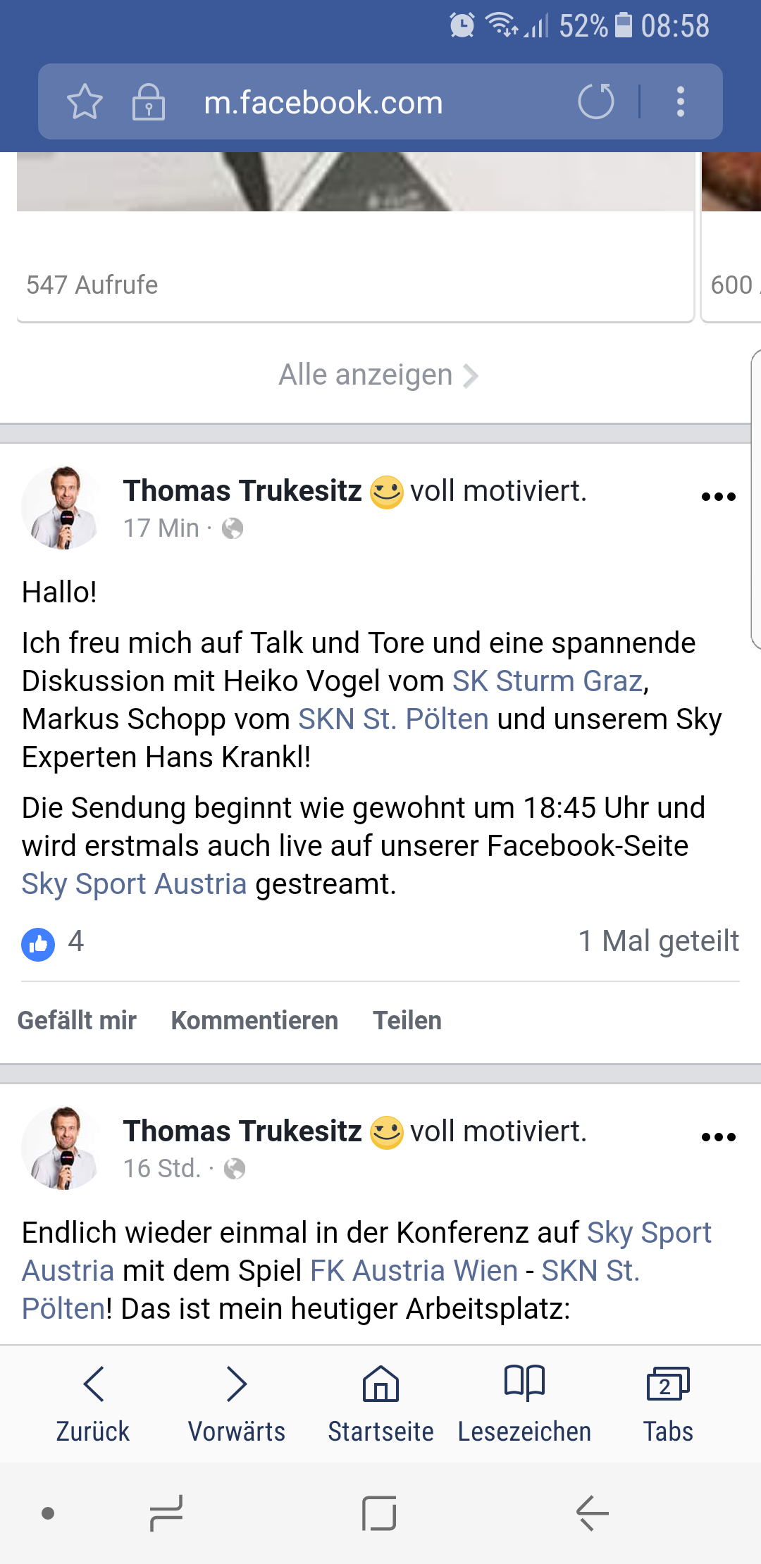 semperline Weltklassekicker Geschrieben 11. März 2018 (bearbeitet) Auslandschwoazer schrieb vor 32 Minuten: Live glaube ich leider nicht. Sky stellt jedoch die komplette Sendung 1, 2 Tage drauf dann auf youtube. Doch. Wird heute das erste mal auf der Sky Sport Austria Facebook Seite gestreamt. bearbeitet 11. März 2018 von semperline 2 Zitieren Diesen Beitrag teilen Link zum Beitrag Auf anderen Seiten teilen More sharing options...