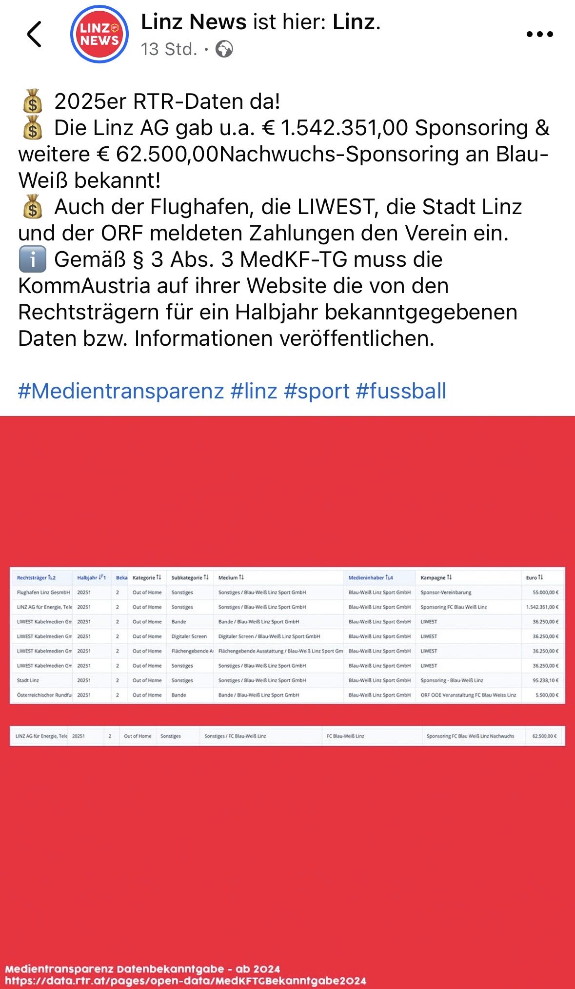 MarioAUT A.U. Geschrieben vor 20 Stunden (bearbeitet) für den kurier ist ja die eigentliche story, das nicht die wiener vereine ganz vorne sind beim geld kassieren. wenns so wär, gäbe es gar keine story und es würde als völlig normal angesehen. bearbeitet vor 20 Stunden von MarioAUT 15 Zitieren Diesen Beitrag teilen Link zum Beitrag Auf anderen Seiten teilen More sharing options...
